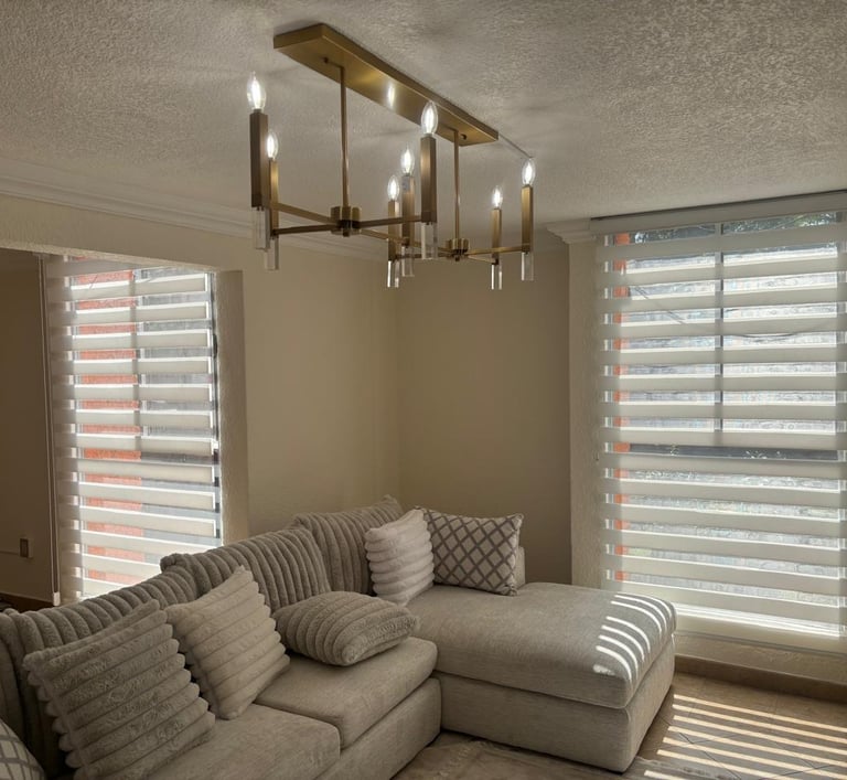 Si en tu hogar o lugar de trabajo cuentan con grandes ventanas, la mejor opción son las persianas sheer elegance, son persianas enrollables que poseen franjas de diferente ancho lo que las convierte en aliado perfecto para controlar la luz natural de forma óptima beneficiando cualquier espacio donde es utilizada.